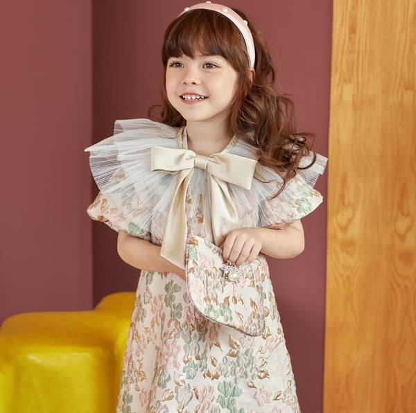 Kid's semi-couture collections are like a wild mashup of colors, textures, and trends straight out of a fancy fashion tour! Picture this: funky combos, playful details, and snazzy shapes all dancing together to take the brand's style game to the next level. With a flair for the extraordinary, this brand crafts one-of-a-kind creations that push the boundaries of fashion.